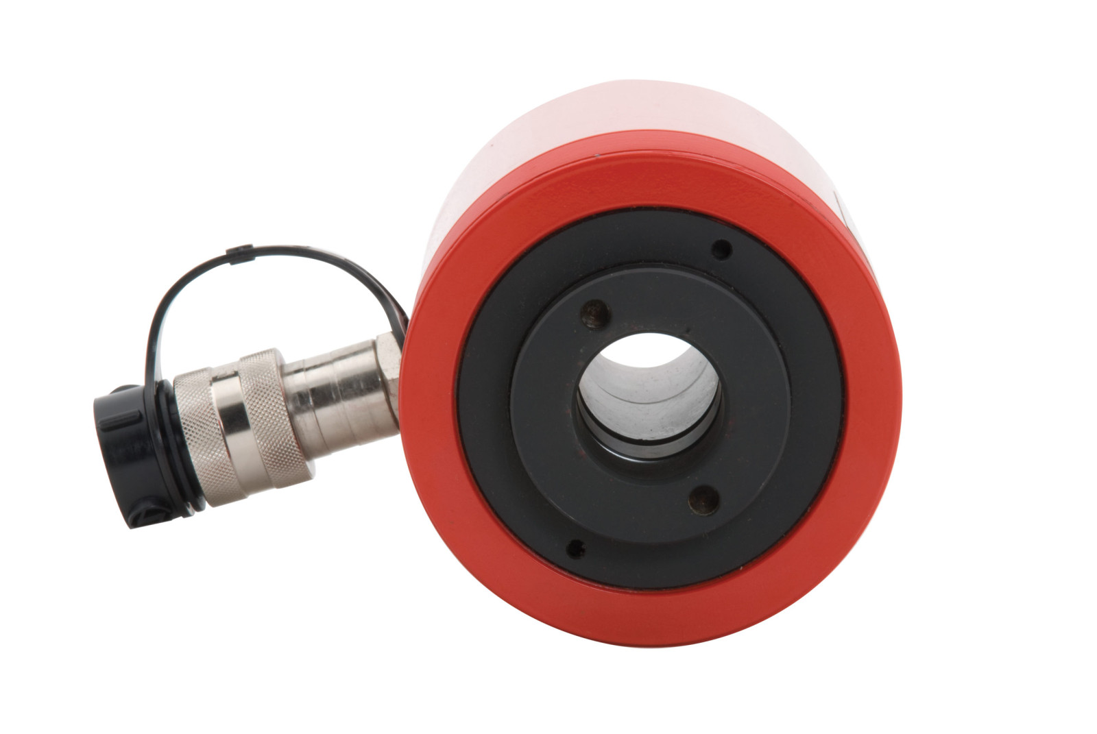 Hålcylinder 30 ton, enkelverkande med fjäderretur, slag 64 mm, centrumhål 33 mm