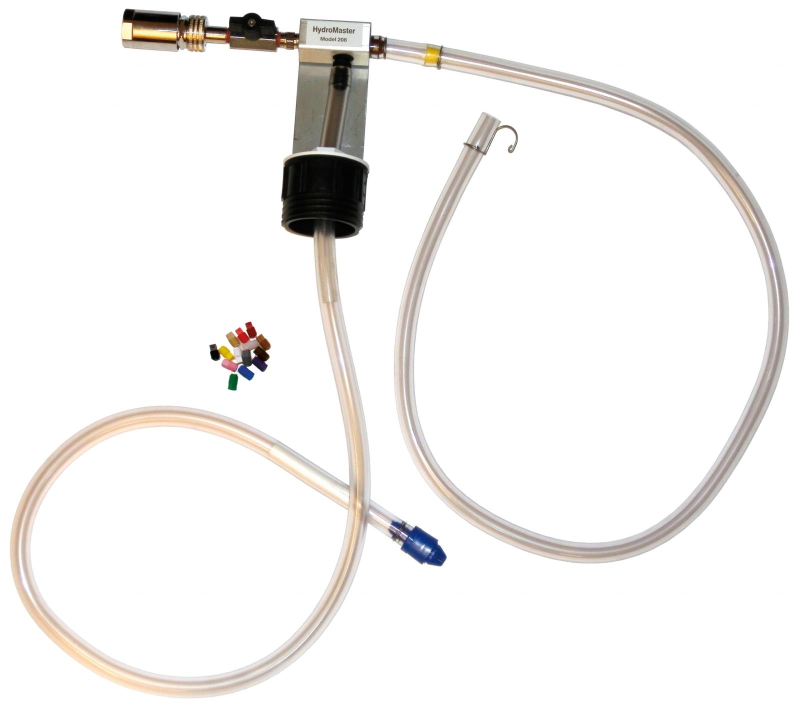 Doseringsutrustning som blandar 1% – 50%. Injektorn drivs av vanligt vattentryck och är utrustad med backventil till färskvattnet. Önskad blandning justeras enkelt med hjälp av munstycken. Godkänd enligt Din19884 och Din En1717. Det finns även backventil i sugslangen till kem-fatet. Lämplig för alkaliska tvättmedel samt spolarvätska. OBS! Ej glykol.