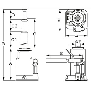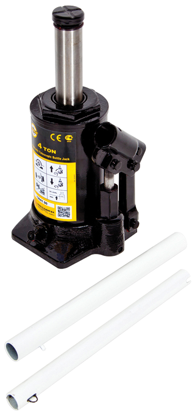 Lyftkapacitet 4 ton. Kompakt konstruktion med spindelförlängare för optimal användning av slaglängden. 2-delat pumphandtag.