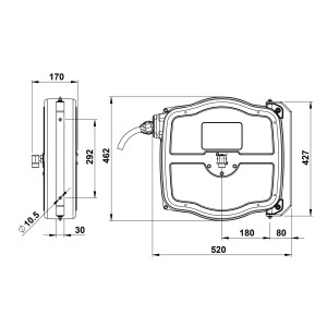 Slangvindorna är kapslade och tillverkade av stål. Slangen är av polyuretan och mjuk även vid låga temperaturer. De är utrustade med returfjäder. Vindorna levereras med svängbart väggfäste.