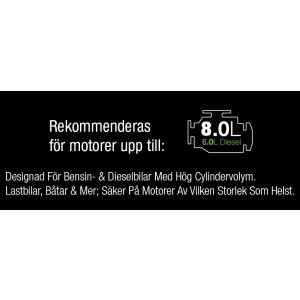 Rekommenderas för motorer upp till: 8,0 liter bensin & 6,0 liter diesel